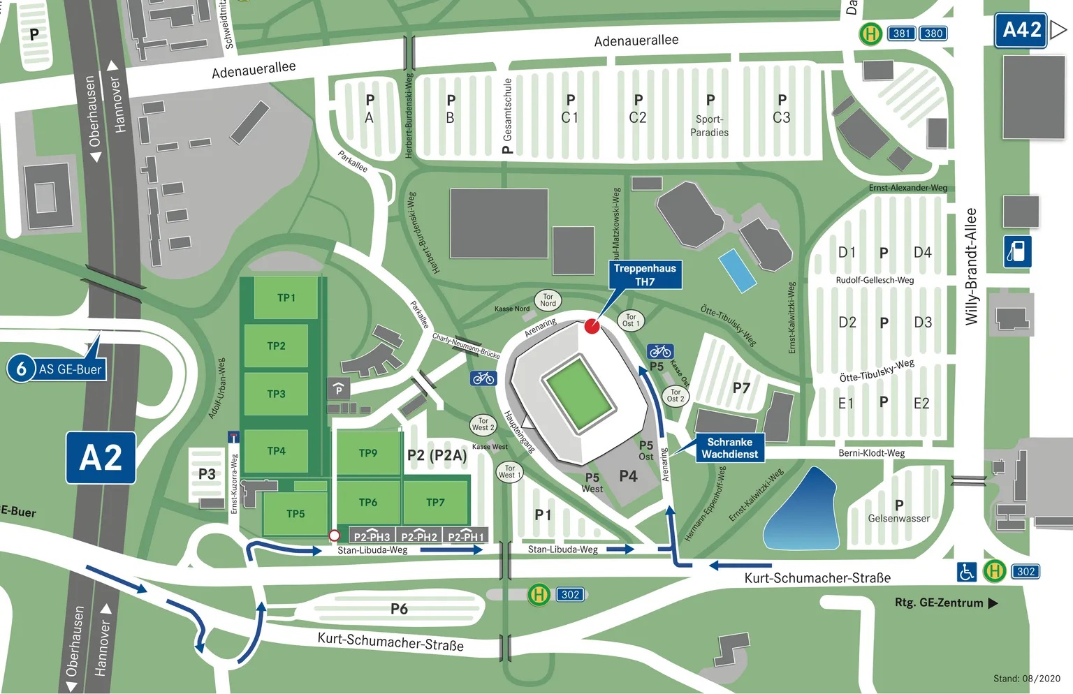 Eingang WEST 1 (großes Tor direkt vor dem großen Parkplatz P1)